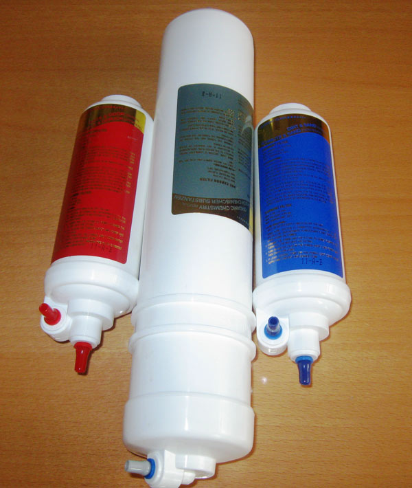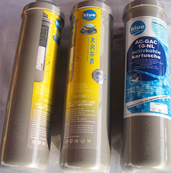 Filter Set für Molekular FilteranlagenBestehend aus Sedimentfilter, Aktivkohle Vorfilter und Aktivkohle Nachfilter (Filtermaterial Kokosgranulat) passend zum Modell ARO-SL-4-NL und Kristall New Line